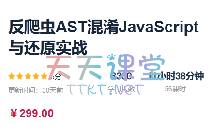 本套课程小肩膀:反爬虫AST混淆JavaScript与还原实战,课程官方售价299元,内容包含视频以及相关课件资料,共4.99G。