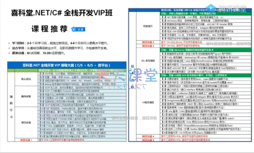 喜科堂C# VIP视频课程,涵盖.NET高级进阶、全栈开发、运动控制及工控上位机开发,价值万元。课程包含从C#语言基础到高级特性、面向对象编程原理、异步编程与多线程、Web开发技术栈、ORM框架与数据库操作、网络通信与安全等全方位内容。更有项目实战与案例分析,助您深化理解并提升应用能力。总计211.99G高清视频及相关资料,助您快速成为C#开发高手。