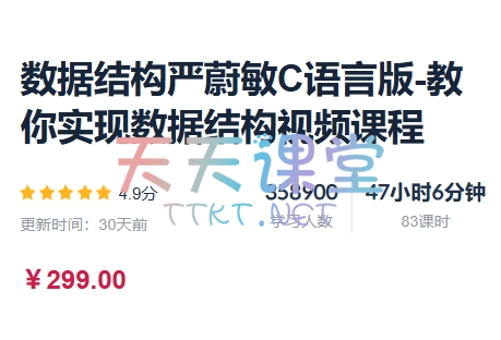 本套课程数据结构严蔚敏C语言版-教你实现数据结构视频课程,课程官方售价299元,内容包含视频以及相关源码资料,共计4.67G